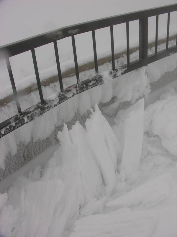 We had taco pie for supper and no one complained, I guess they liked it! I went outside for a few minutes, temps were in the mid-thirties and it was raining. Visibility was about fifty feet. Took a few pictures, but it was mostly a waste of time. The rain was ruining the rime ice and chunks were falling off the towers, so I went back inside.![]()