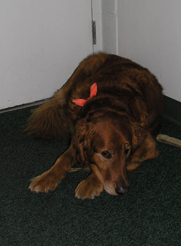 We rode to the two mile post in the MWO van, then switched all our gear to the MWO Bombardier, better known as the Sno-cat, though that is a brand name and doesn't apply to this machine. At the summit was the usual line of folks passing gear and supplies, first unloading the tractor, then reloading for the group that was heading down. Inside I got right to work putting groceries away, cleaning up and getting ready to make supper. I had Red, (Chris's Irish Setter) and Tank, another very young dog, who belongs to one of the fellas working on the power switch, I didn't catch his name, for company in the kitchen for most of the afternoon. Nin was in and out, checking on the commotion and letting the dogs know who the king of the mountain was.![]()