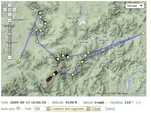Ed's page only shows the most recent location but if you go to the main site (in the VFTT link) you can see the whole route. Here it is as of last night. You have to be sure to select a high enough value in the "Trail" option to see all the points.