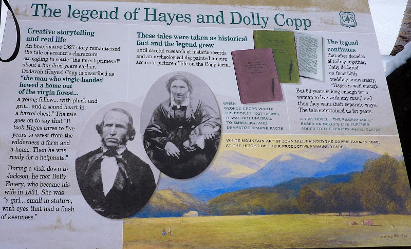 Perhaps this is already well-known by most folks, but nonetheless I found it interesting that a large portion of this ski trail is located on the land which was once owned and farmed by Hayes Copp and his wife Dolly back in the mid 1800s. The Forest Service has some placards at a spot along the trail which give some details about the Copp family (see TWO photos below).