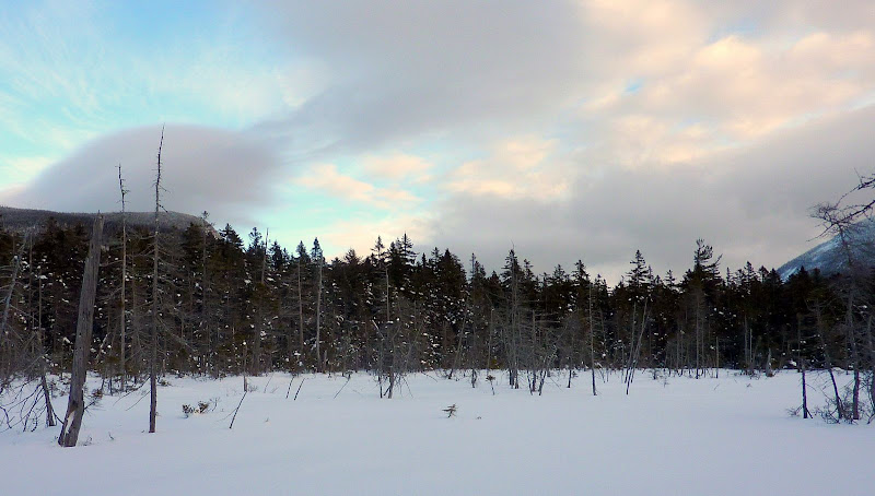 On the morning of our hike, my friend Steve put together a spur of the moment plan for a snowshoe adventure. With an overcast sky and an "iffy" forecast for the remainder of the day, it seemed pointless to have any "lofty" goals (such as conquering a 4k peak), especially since neither of us is working on a peak bagging list! So, we embarked on a snowshoe hike mainly for the pure joy of being out in the woods on a winter day. It sure beats working out at a gym!