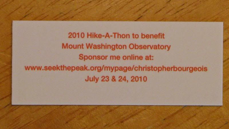 My 48: Washington (07/07, 07/08, 07/09, 09/09, 07/10), Lafayette (08/08, 08/09), Lincoln (08/08, 08/09), Pierce (07/10), Carrigain (09/10), Cannon (10/10), Jackson (11/10), Field (11/10), Tom (01/11)