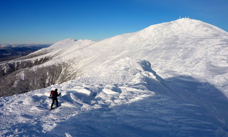 After basking in the sun and having some lunch, we headed off for Mt. Monroe. Due to a lot of drifted snow, there was no obvious snowshoe track to the summit from previous hikers. That was fine with us. It was actually fun to "snow-whack" our way to the top!