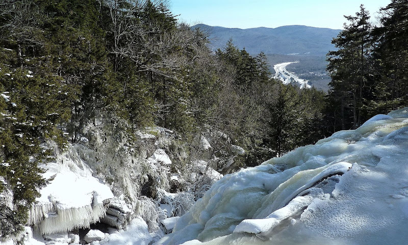 On the way up to Bog Eddy, a snapshot was taken from near the top of the Georgiana Falls/Harvard Falls complex. From here, you peer down at I-93 off in the distance. Probably many of you have seen this vantage-point in the distance as you travel northward on I-93. Particularly during the winter months and during the Spring run-off, it appears as a "white spot" near the top of a ridge on the west side of the Interstate corridor in the vicinity of Lincoln.