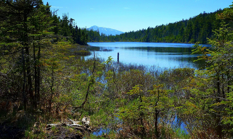 From Wocket Ledge I headed eastward on the Mahoosuc Trail to get to my next destination which was Dream Lake. In my opinion, the view from the northeast end of this lake is exceptional. Seen "floating" on the horizon is Mt. Washington on the left with Mt. Adams on the right, with a portion of Mt. Clay in between. About the only thing to dislike about Dream Lake is that there's no really comfortable place to sit and enjoy the views.