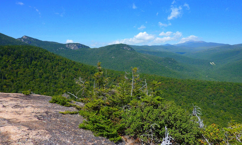 In case you might be interested, below is a wider view of the scene shown in the photo I originally posted. This wider view is also looking northward. Also, just like the original photo, it includes Mts. Washington and Monroe at the top of the Rocky Branch Valley. But in addition, it also shows Stairs Mountain on the upper far-left side of the photo. The large cliff face immediately to the right of Stairs is a place which is I think the rock climbers have dubbed as "The Back Stairs", but I'm unsure of this.