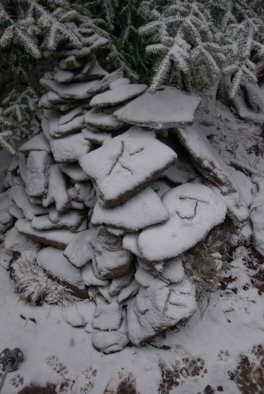 Sure feels early for snow, particularly when it was mid-60's and the perfect fall day in RI today. We did Starr King and Waumbek as our last winter hike of the year last year and celebrated the entrance of spring on our way back over Starr King. Seems to be the place to be for the changing of the seasons - either by calendar or by Mother Nature. Love the graffiti pic! I'm betting that you've got one very happy snow dog on your hands now too that's going to be looking forward to lots more of the white stuff.