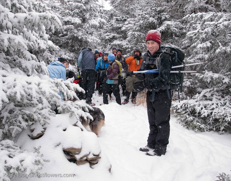 One of the great things about being an individual part of a vast and giving community, the hiking community, is that every now and then, if you're lucky, you get to witness a momentous event. While hiking in the White Mountains there are many opportunities to be witness to such occasions. It could be a spectacular sunrise or sunset, an undercast, or maybe a glory or a rainbow. Maybe it's the aftermath of an event, such as a raging torrent after a downpour or a sugar-coated forest after a snowstorm. These opportunities abound, while others, more human in nature, occur in an equally frequent manner, but are more remarkable due to the individual nature of the occurrence.