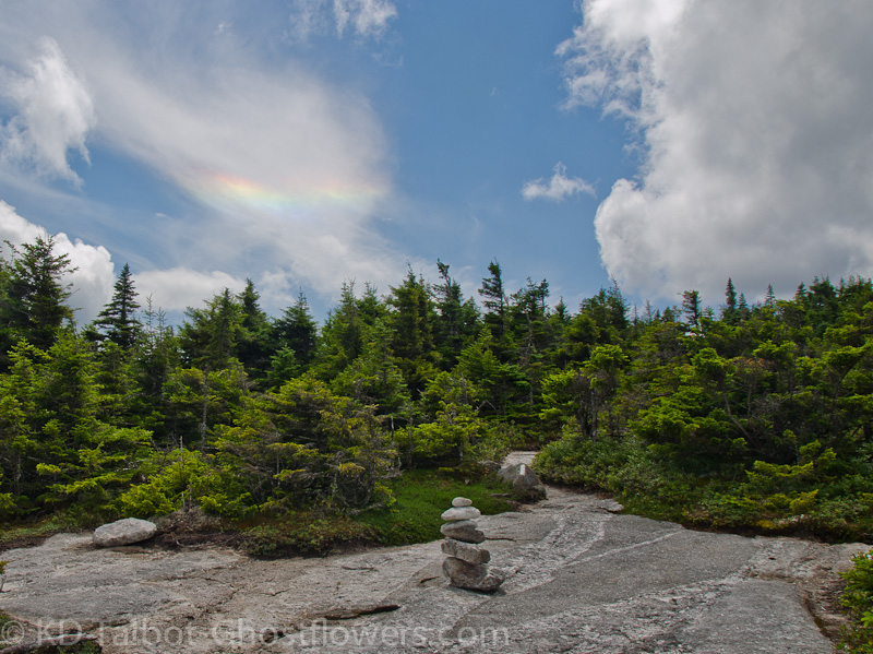 In the sky above West Baldpate was a rainbow. Well, not really a rainbow, a phenomenon known as Iridescent Clouds. Now there is the explanation of how the light is refracted by ice crystals in the upper atmosphere and all that science to explain away what I know in my heart it was. There are dog owners who believe in the place known as the Rainbow Bridge where they will meet their beloved pets again on the other side. There are those that believe that rainbows are a sign from heaven that we are being smiled down on from above. Well, I could try to rationalize what it was with some science, or I could choose to believe what I know it to have been. Judy and I embraced as the sign from heaven faded.