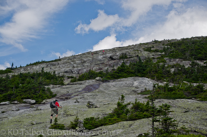 I am using the excuse of not having much sleep at all the previous two nights to explain my pitiful poor performance on this hike. I allowed myself to get dehydrated and cramp up as we hiked back to West Baldpate. Chugging two Gatorades and a half a liter of water allowed me to continue despite my exhaustion. Honestly, I am way out of hiking shape as we have done little since Emma's passing and because of our hatred of humidity and biting insects. The insects were bad, but not terrible, mostly only bothersome when we stopped. Despite it being a nicer, much cooler day than it had been in some time, the humidity was still topping the charts and I felt as though I had sweat off several pounds. A quick look in the mirror corrected me on that.