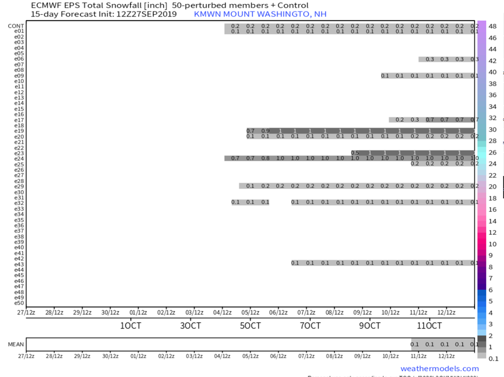 Now of course at this time of year, especially with tropical systems in the Atlantic, we could see a sudden change in the forecast and result in a better chance of snow in the coming weeks and that is what I am hoping for. Right now all the models are in good agreement of cold, moisture starved air masses moving through but hopefully there will be a change in the weather pattern for the second half of October. That is too far out currently to have any idea of what is going to happen.