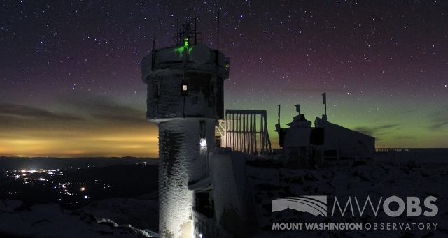 On December 15th I experienced the strongest wind of my life. It is something I will never forget! I suited up to clear glaze ice from the instrument tower during one of the last observations of the day shift. Winds had been increasing gradually all day and were sustained between 80 and 90 mph at the time I headed out. While on top of the instrument tower the winds suddenly gusted to 113 mph, pinning me up against the railing. This gave me the biggest adrenaline rush of my life, far greater than any roller coaster I’ve been on! The winds peaked shortly after with a gust to 121 mph, making it the windiest day I’ve seen on the summit. A relatively mild start to winter allowed us to take regular 4-wheel drive vehicles all the way to the summit until the end of December. That changed in January when I finally got the opportunity to ride in the Mount Washington Observatory Snow Cat; an experience I had been looking forward to since my internship began. The experience was like no other! It felt like how I would imagine it would feel like to ride in a tank, only with many more windows. Mount Washington Observatory Snow Cat Throughout the winter I enjoyed tasks such as de-icing the instrument tower and shoveling snow. To this day it is thrilling every time I climb the instrument tower to de-ice. Also, one of my favorite experiences while interning was the appearance of the Aurora Borealis on a few occasions, including an appearance during halftime of the Super Bowl. With some help from Ryan, the night observer on my shift, I was able to learn a few things about night time photography and snap a photo of the most recent Aurora visible from the observatory. Aurora Borealis (right) as seen on 3/6/2016 Lastly, I would like to thank Mount Washington Observatory and the entire summit staff for the opportunity to hone my forecasting skills and learn about mountain meteorology through weather observations. My time spent here has been an awesome experience all around from extreme weather to new friendships and many laughs. No matter where life takes me, I’m sure nothing will compare to the memories I have living at 6,288 feet. Thank you for a dream fulfilled and the experience of a lifetime! Andrew Henry, Summit Intern