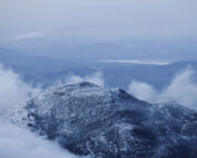 As the undercast slowly diminished, other landmarks revealed themselves: Mount Coburn, Camel’s Hump, Killington, and even Jay Peak. Darkness has now enveloped the summit and the sparkling valley lights twinkle laughingly at us.