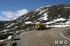 Until today’s cold outbreak, the warm weather this past week really worked havoc on the slopes of the mountain. With little snow above treeline to begin with, we found the landscape along the Autoroad rather abnormal for this time of year. On the trip up today, we took the truck to 2 miles up the road, and beyond that, we found long bare spots usually covered with feet of drift. Moreover, lots of rock and exposed vegetation on slopes typically skied this time of year. It was very much a spring-like trip back to winter. The ravines are still good, but otherwise, the snow is all down in the trees. Very strange…