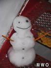 Growing older does not necessarily mean growing up. Of course, with it comes more responsibility, but it does not mean one can simply shun the responsibilities they had as a child. You must still brush your teeth, do the dishes, and get to school on time, especially if you’re now a teacher. One of my greatest responsibilities I had as a youngster was to have fun and I have never lost my desire to fulfill this. I spent countless hours building forts of all sorts (stone, hay, and tree), biked every dirt or log road I could find, and built jumps on the hill across the street to go off of with my snurfer and eventually snowboard. Of course, a main activity that coupled well with jump building (when the spring snow was wicked sticky) was the creation of the biggest snowman possible (which often turned into a jump). Having worked here on the summit for several years now, it appears this desire is still present in many of our fine winter interns. One may remember back in February of 2009, the creation of our good friend, Rimey. Ali and I had a grand time creating him and as the temperatures dropped, he turned to solid ice, resulting for quite a long tenure on the summit. He was the most traditional of the summit snowfolk, with a carrot as a nose, chocolate chips for eyes and a mouth, and a carrot-cob pipe. Last winter Nick constructed a fine looking fellow, Mr. Snowflake, from a large drift in the front entranceway. He was named in honor of Wilson “Snowflake” Bentley, born in Irasburg, Vermont (my hometown), and who did his research on snowflakes in Jericho, Vermont, a town I spent a couple years living right next to. That brings us to our current frozen fellow on the summit, Squirt. Constructed by Becca, it is no surprise this little feller has washers, bolts, screws, and a ziptie. I must admit I am a little disappointed that the pencils are not carpenter’s pencils, but we can only work with what we have up here! Hopefully temperatures will not get too warm inside the tower and he can hang out to greet us once an hour for observations. He doesn’t say much, but with a smile like that, he doesn’t have to!