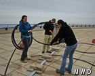 Beautiful conditions on the summit today allowed the summit staff to tackle some outdoor projects. Roger, Pete (IT Manager from the valley), Kaitlyn, Alex, and I all headed outside to fix, fabricate, and clean up the deck and tower. Pete and Roger worked hard on the top of the tower installing radio antennas. This project took quite a while but, the light winds made it easy to do their installations. On the deck, Kaitlyn, Alex, and I worked on pulling old cable and moving paving tiles into one location. It was “grunt” work that needed to be done to better organize equipment that had been sitting there after a long winter.