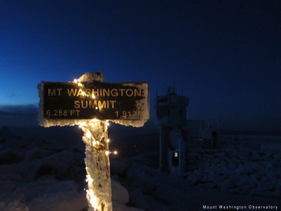 After I woke up today I fixed myself breakfast and sat down to watch the classic holiday movie ‘A Christmas Story’ which isn’t unusual for a Christmas morning but, this wasn’t a usual Christmas morning for me. This is my first week on the summit of Mount Washington as the Plymouth State winter intern. So far my work on the summit consisted of shadowing the observers and data mining for a research project I am doing with Dr. Eric Kelsey. The project focuses on the effect the topography of New Hampshire has on a cold air damming event, like which stations mix out first and why. So instead of finishing up breakfast and jumping right into research I decided treat myself to a walk around the summit. As I left the observation deck and began to climb over the rime covered rocks I noticed how clear it was. The visibility was 120 miles in every direction and the winds were light compared what they were the night before. As I walked around exploring the area it really hit me how wonderful the opportunity bestowed upon me really was. I have dreamed about working on the top of Mount Washington during the winter since I first toured the observatory as a child and now it’s happening. With this realization that I am living out one of my dreams I couldn’t have asked for a more beautiful Christmas morning.