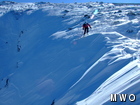 Anyways, I wrote about a particular gully in the Great Gulf that Aubrie and myself looked at in the comment on Friday. I ended up going back down there on Saturday with Mike Pelchat, the manager of the Mount Washington State Park. He was a huge help in determining whether it was a safe run to ski. He brought some rope with him, we tied securely to a nearby rock and he went down into the gully to check out the snow. It turns out that it was a very consistent layer of relatively soft snow that didn’t really have anything underneath it to slide on. In a nutshell, it was determined that it was safe to ski.