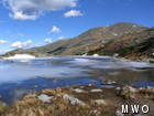 One of my favorite parts of this job is the fact at times I get to hike in some of the most beautiful places in the northeast. Today was one of those days and was made even more so by the fact that it looks as though we will be in the fog for a bit. Don’t get me wrong, I love looking at clouds. It’s just that I like looking at them from a slight distance. As a general rule, they are more impressive on the outside than the inside. Today I took the opportunity given the nice weather to head down to Lakes of the Clouds hut and do some work. I had to rewire a data logger, install a memory card, and replace a temperature/humidity probe. After this was complete, I had a nice leisurely stroll back up the mountain, stopping along the way to take some pictures. With winds up around 40 mph at the summit, I took the time to enjoy the rustling of the sedge that before long will not be heard again until springtime. There were lots of little birds flying all about and chirping with surprise as I came close. The lakes were covered with a thin layer of ice in spots and open water in others. All the while, friendly cumulous clouds floated a couple thousand feet over the summit, casting an ever-changing pattern of shadows on the landscape. Fast-forward twelve hours to now and the windows outside this office are now covered in rime ice, obscuring the outside world of wind and fog. I am definitely glad work got me outside a bit today – it was not a good day to spend in front of a computer!