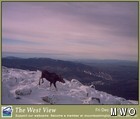 A few minutes later, and by remarkable happen stance, the moose scurried to the west side of the building just in time for the West View cam to snap a perfectly framed picture of the massive ungulate. I suspect a few very lucky web viewers caught a glimpse of this once in a million shot. The moose then completed its circuit by running back over to the cog tracks on the east side of the building, then along the tracks down toward the Great Gulf, before it decided it liked the looks of Ball Crag a bit better. There the moose was greeted by a hiker ascending the Nelson Crag trail. I can only assume they were both dumb struck for a period. The image of the hulky burnt umber body of this massive beast set against the crisp white of rime was compelling. So too I suspect a moose is baffled by the bright yellows and reds of fancy gore-tex. Then again Moose are probably color blind… still I’m sure it didn’t know what to make of an ice axe and crampon clad biped.