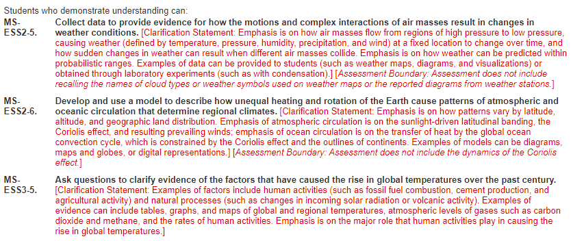 Following a summer hiatus that sadly saw the departure of both Tom and Ian, MWO was fortunate to see Nicole Tallman and Nate Iannuccillo come on board in the Weather Observer/Education Specialist role. With a chance to pause, gather feedback from the spring’s programs and contemplate how MWO could sustain programs not just for a month or two, but for the whole school year ahead, the education team decided to focus the virtual classroom even further to support middle school students as they traverse a number of topics within weather and climate. The Next Generation Science Standards served as a guide help build out the curriculum for the school year as well (see the screen shoot below). Programs moved from Facebook Live where they were previously held, and shifted to Zoom Webinar in order to provide even more flexibility, security and privacy protections to students no matter where they connected. Programs this Fall first took on topics in weather, where Nicole and Nate have so far covered everything from careers in meteorology, to global circulation patterns to weather prediction. As the year comes to end and winter weather reigns supreme in the mountains, Ice and Winter Precipitation will round out December.