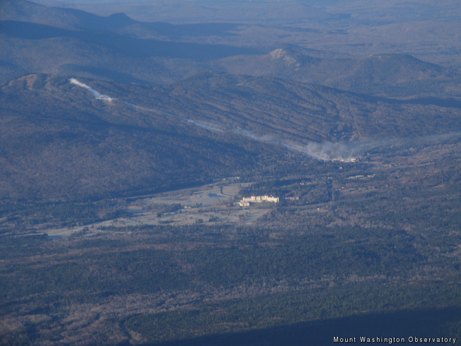 The top of Mount Washington is bare of snow besides a few spots of snow here and there. However, this will surely change in the next 24 hours as a winter storm approaches from the southwest. Bretton Woods ski resort is already preparing by putting down a base layer of snow before the storm arrives tomorrow. A plume of artificial snow can be seen from the image I attached. Winter storm warnings are in effect for most of northern New Hampshire as the models predict a favorable track for snow. Cold air damming and evaporative cooling will prevail over warm air advection produced by the storm allowing the majority of the precipitation to be snow in northern New Hampshire. Traveling farther south in New Hampshire snow will begin to mix with ice pellets and rain as warm air advection provides a warmer layer aloft warming temperatures above freezing. Models are showing snow totals of 10+ inches and less as you head farther south.